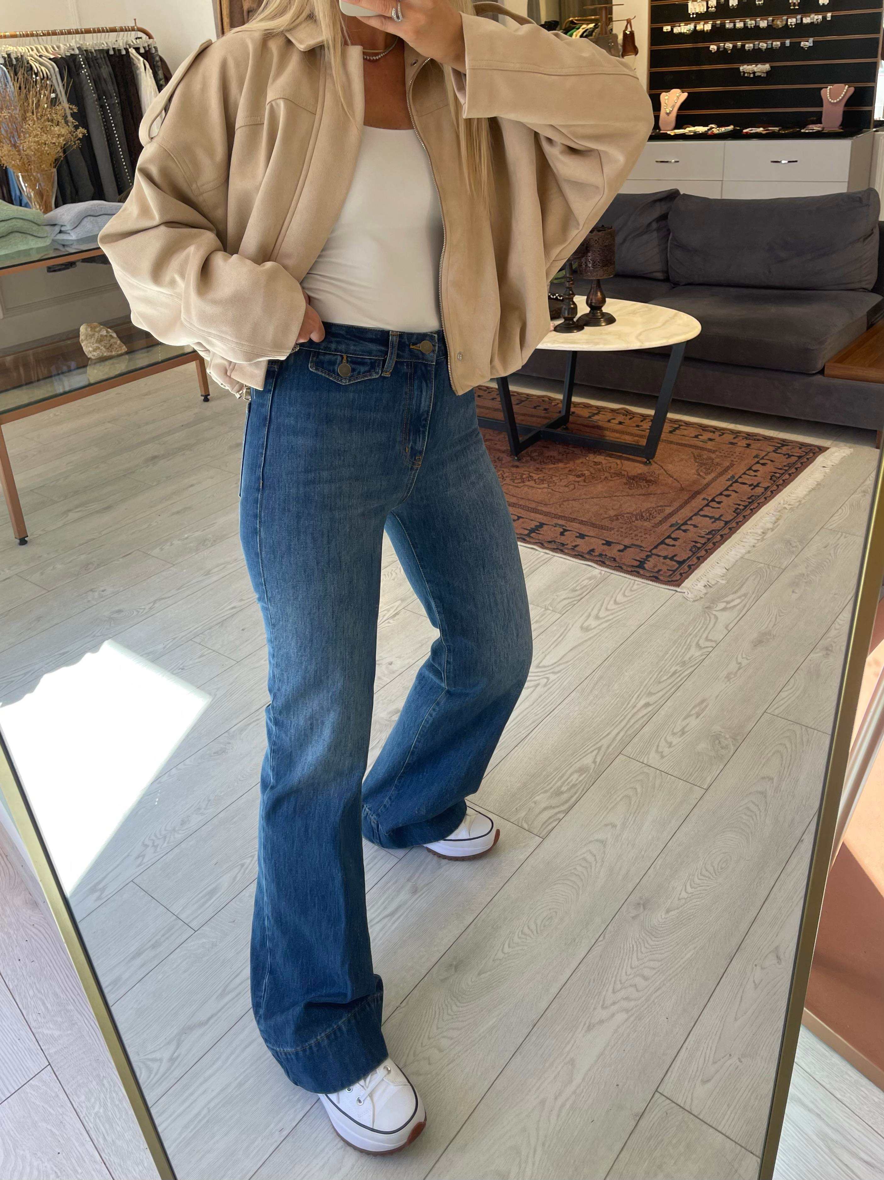Cep Detaylı Yüksek Bel Flare Jean (PNTLN112)