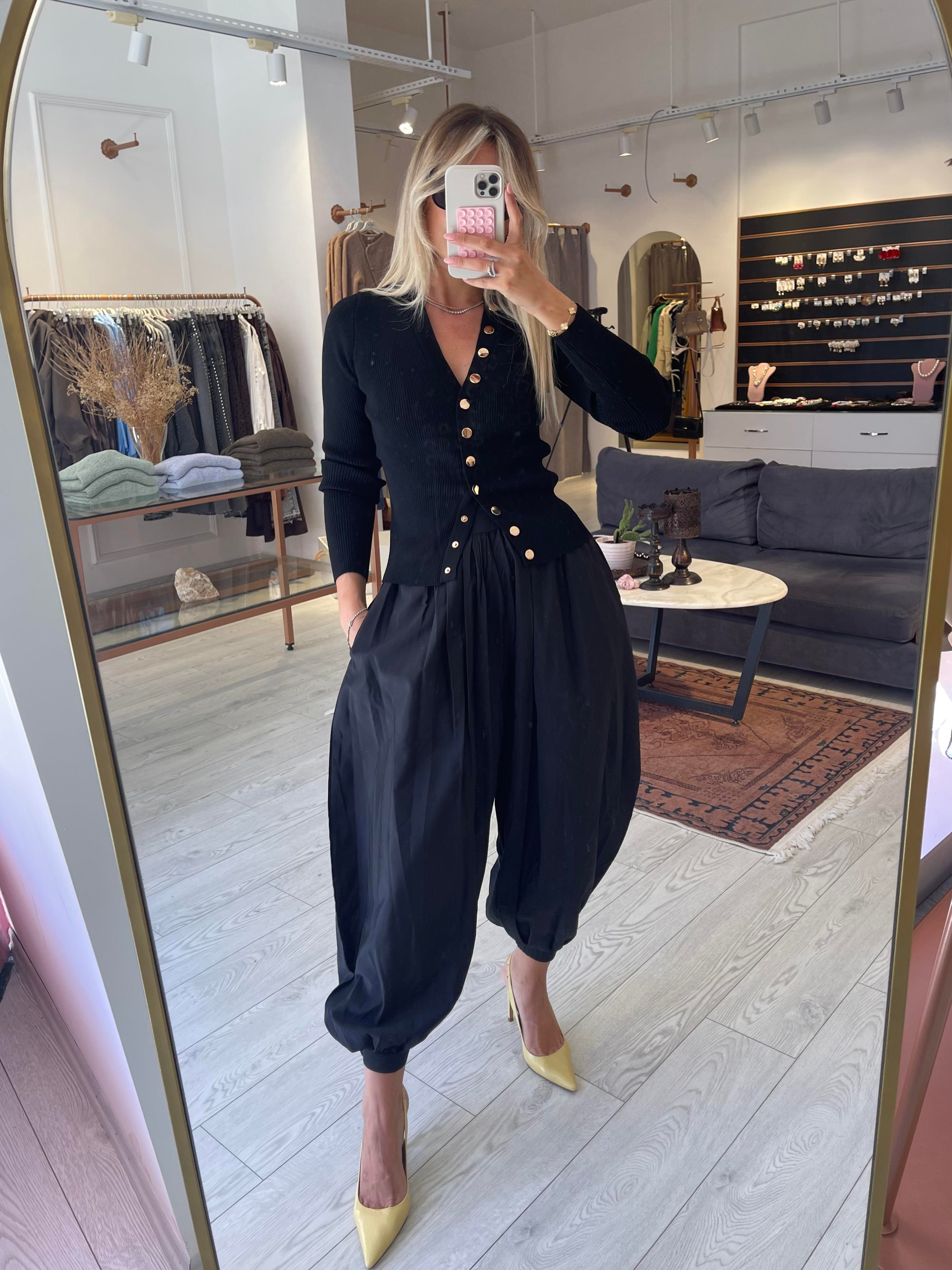 Siyah Arka Bel Lastikli Şalvar Pantolon